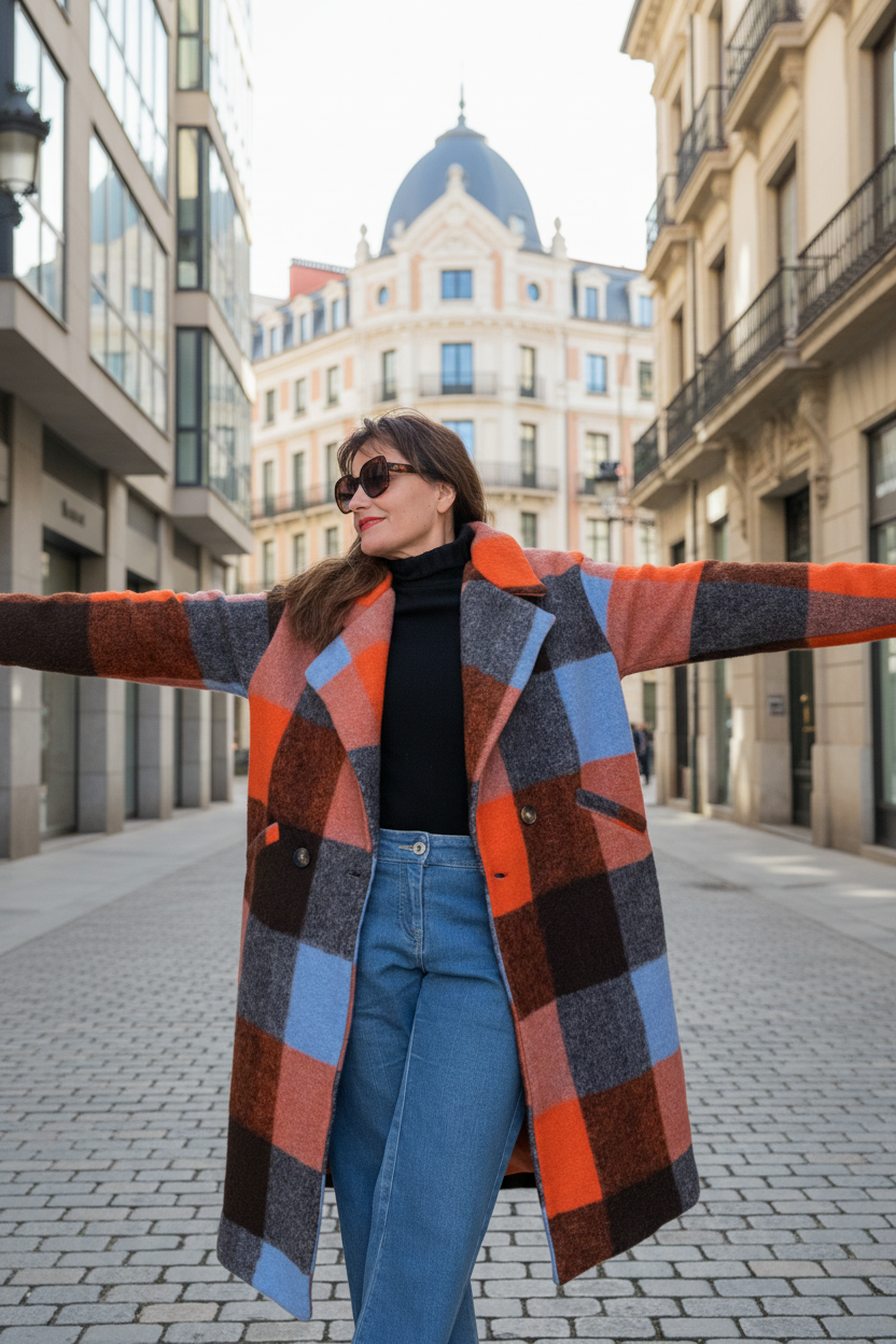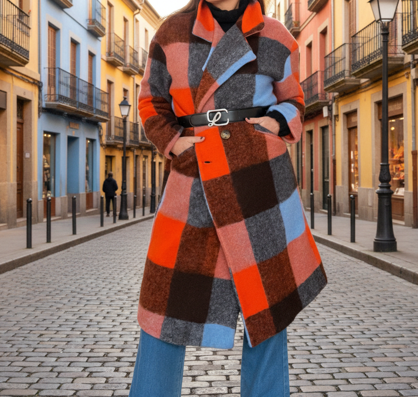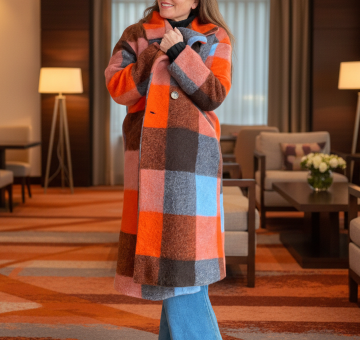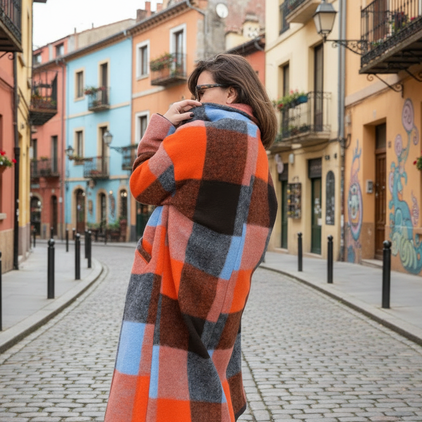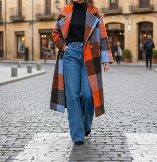 Abrigo largo de mezcla de lana (30%). Diseño de cuadros grandes.Solapa clásica, cierre de botones y caída recta muy favorecedora.Forro interior, bolsillos.