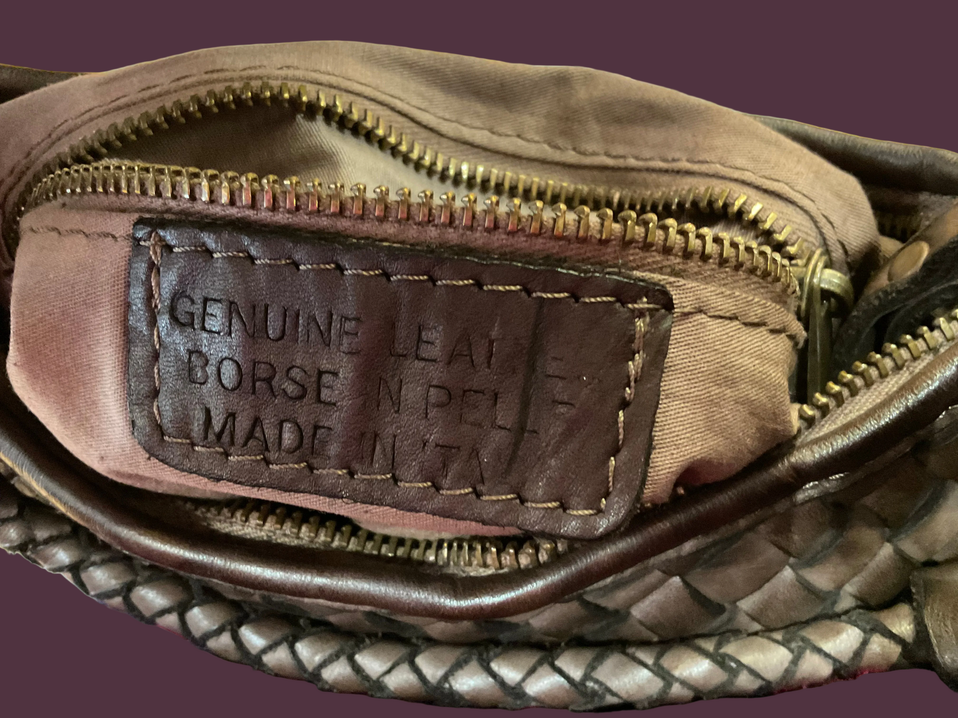 Bolso de piel trenzada en color marrón chocolate. Diseño estilo croissant con asa corta y cierre de cremallera. Incluye asa larga desmontable. Interior forrado con departamento.