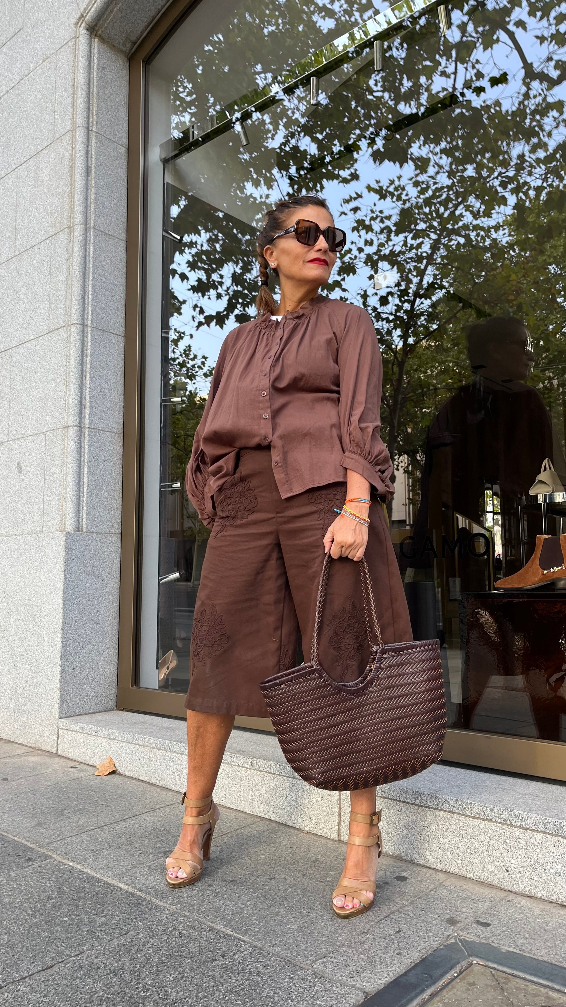 Diseño artesanal de gran capacidad con asas largas al hombro. Interior sin forro que mantiene la pureza del material.