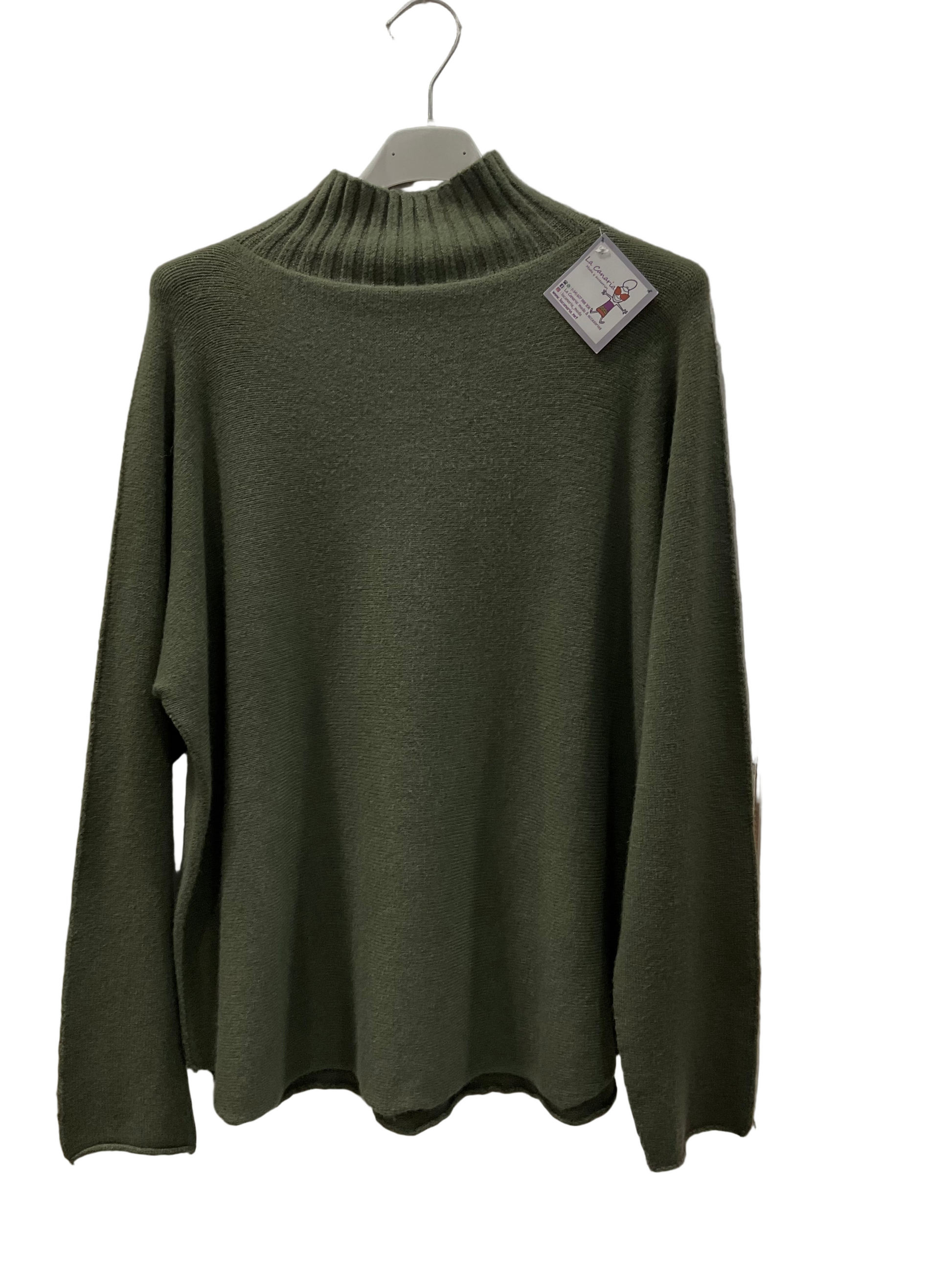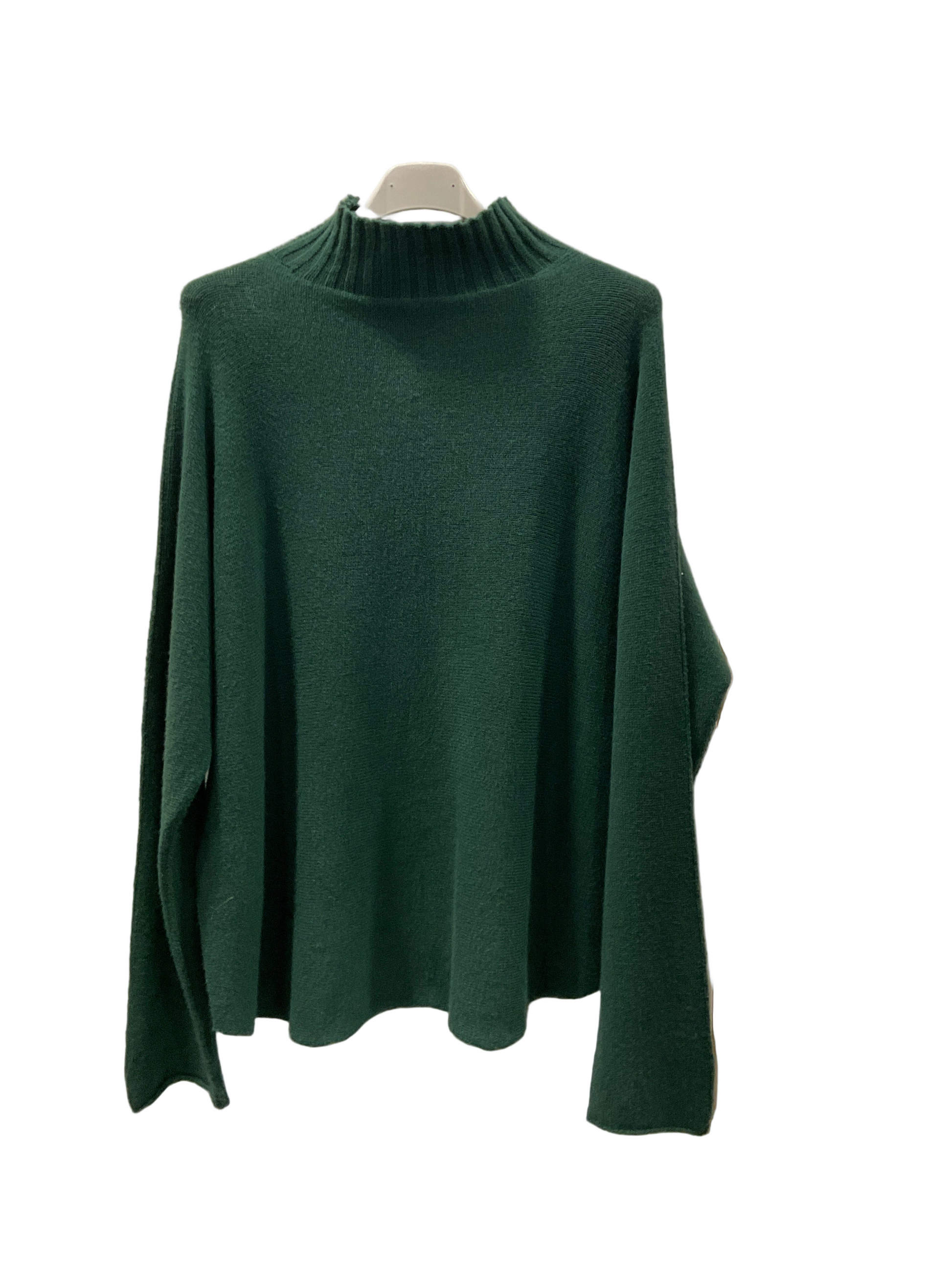 Nuestro jersey en color verde botella es de esos básicos con los que siempre aciertas. Cuello ligeramente alto y el corte suelto hacen que sea comodísimo y favorecedor.