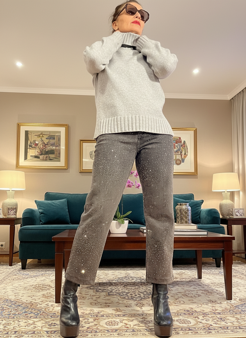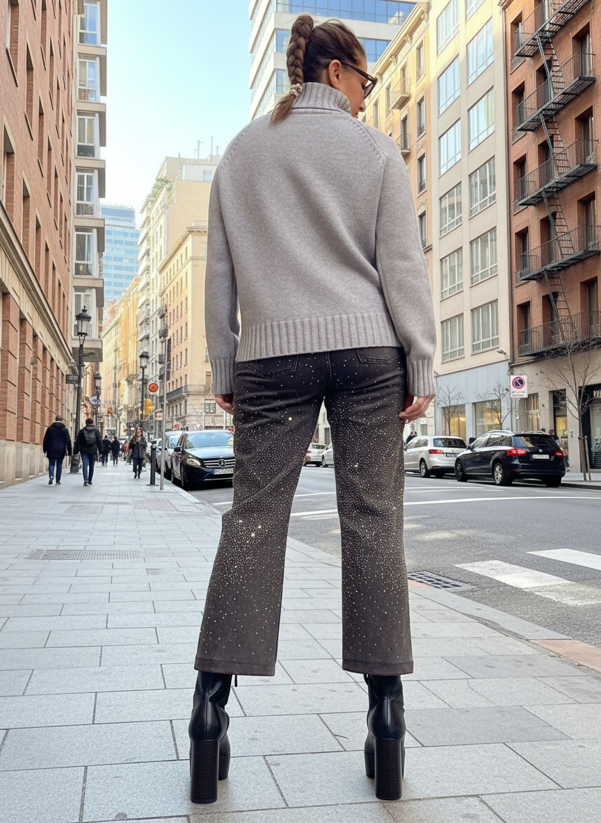 Cuello alto, manga larga y detalle de canalé en puños, bajo y laterales. Corte cómodo, queda bien y combina con todo.