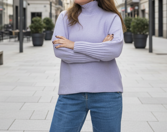 Diseño de cuello alto con acabado acanalado. Confeccionado en punto suave de tacto agradable. Manga larga con puños anchos de canalé.
