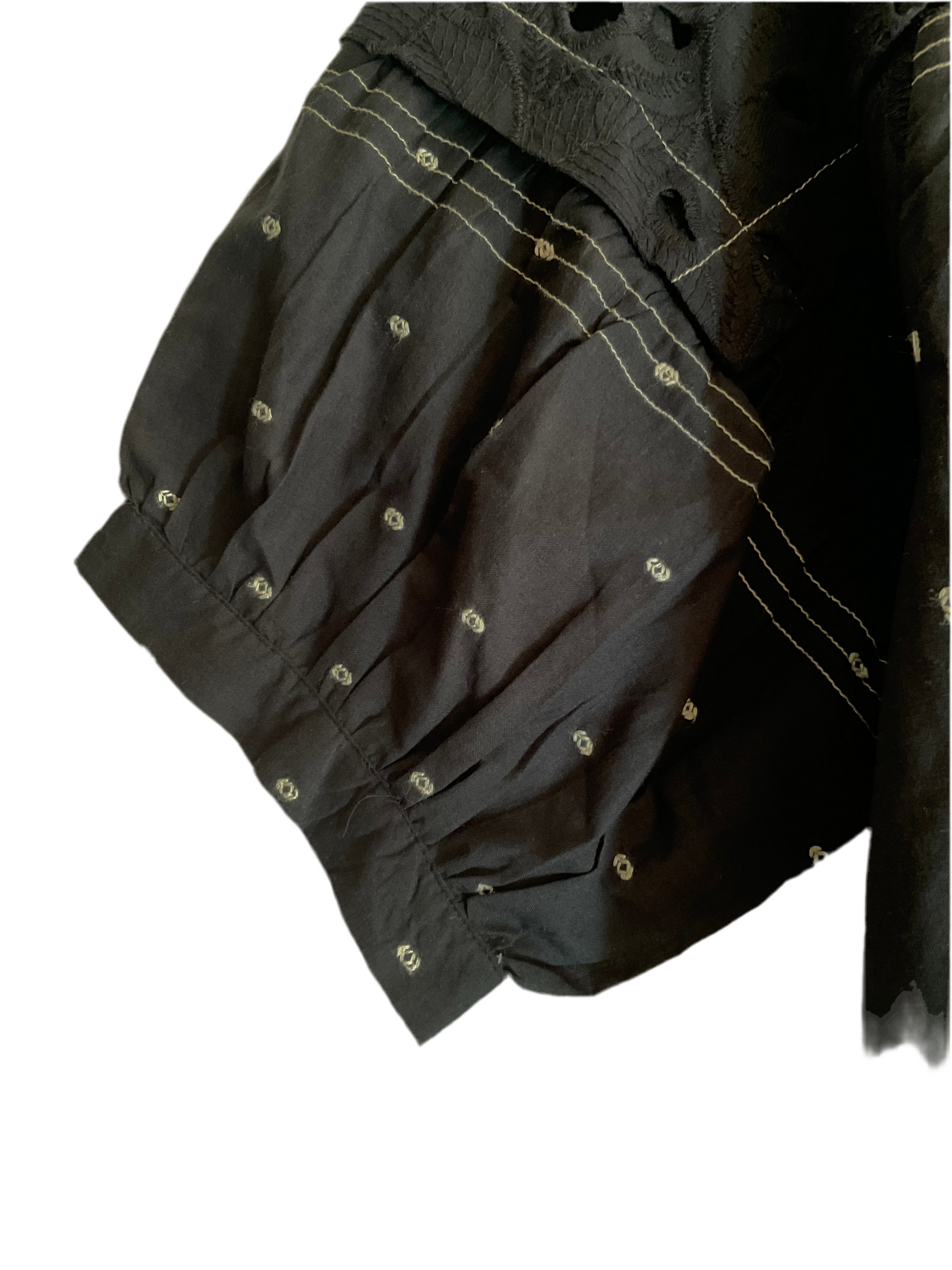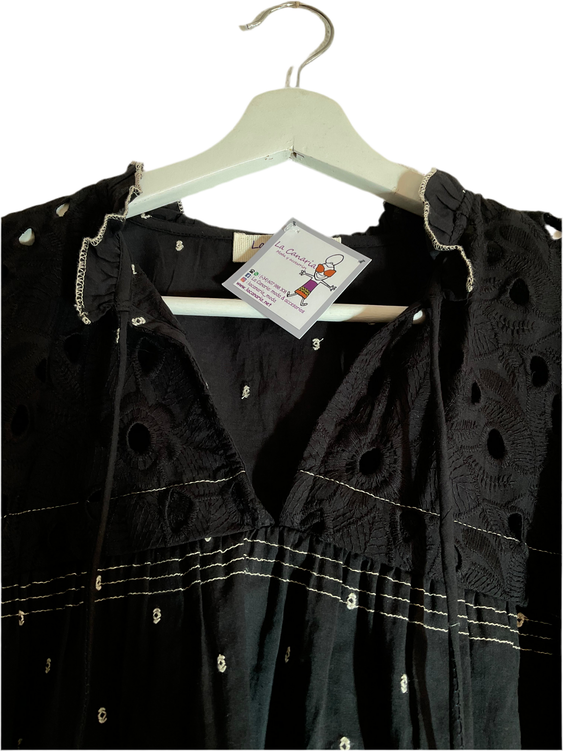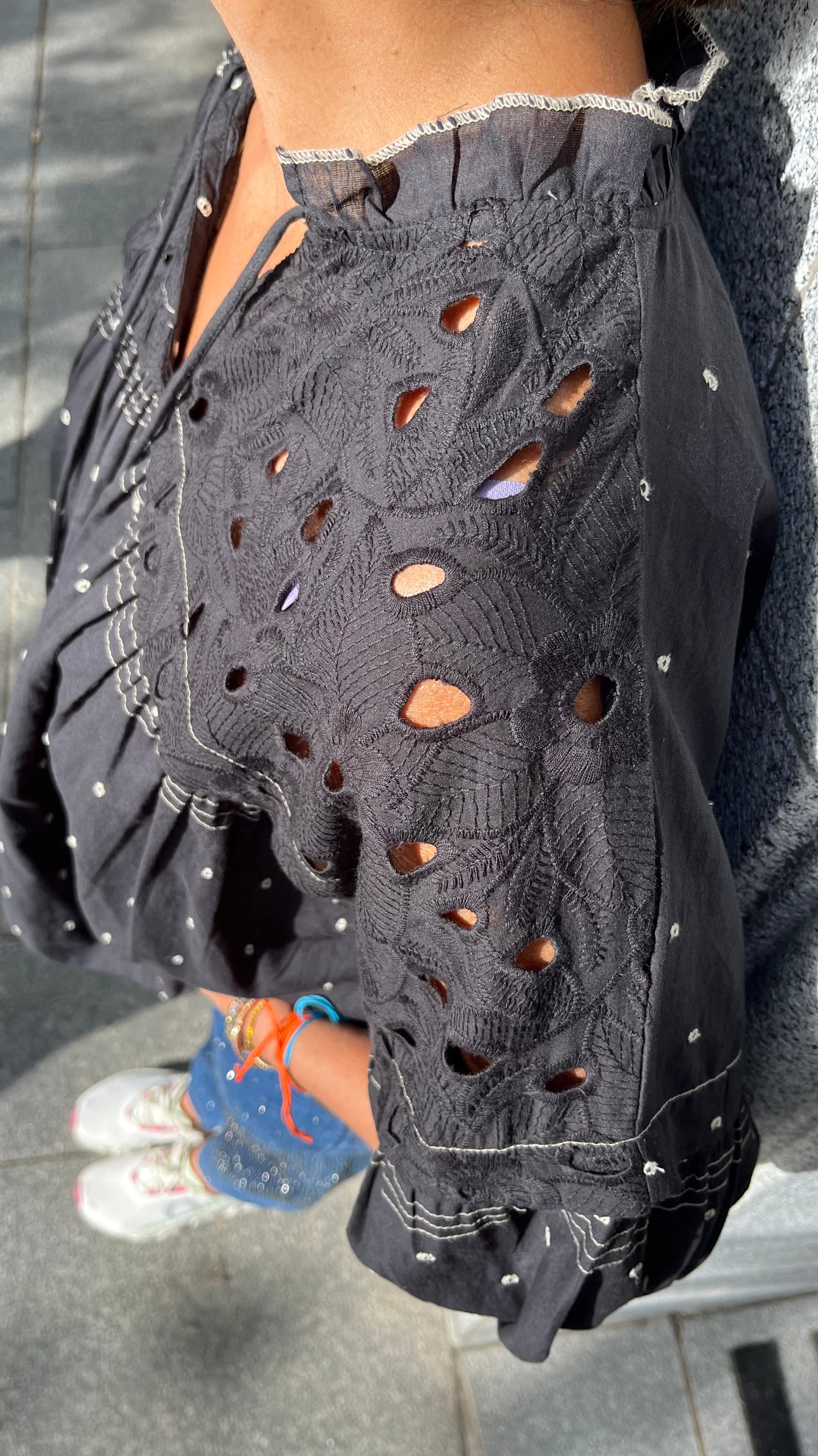 Blusa de algodón con bordados. Diseño con canesú calado y bordado floral en la parte superior.