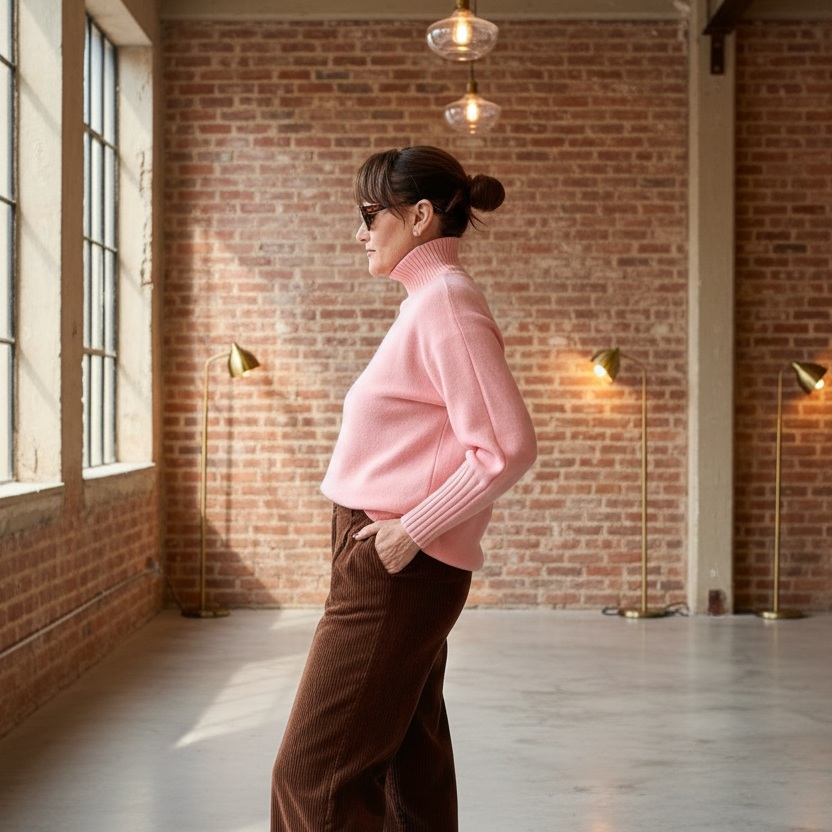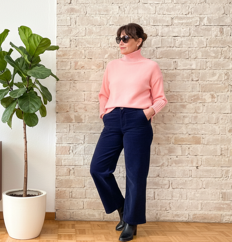 Jersey de punto tejido muy suave, no pica. Cuello alto y puño ancho. Caída bonita y muy favorecedor. Un básico especial para el día a día.